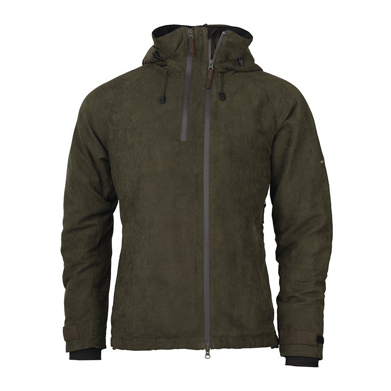 La veste Laksen, modèle Wexford, est déperlante, imperméable, respirante avec effet coupe-vent (traitement DWR et membrane CTX). Elle dispose de plusieurs poches et d'une capuche ajustable matelassée. La veste Wexford s'ouvre au moyen de deux zips. Son revêtement extérieur type peau de pêche la rend particulièrement silencieuse sans être trop fragile dans un biotope difficile.