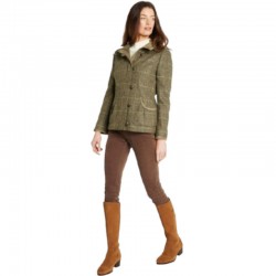 Ce modèle Thistle est en tweed vert ,100% laine vierge de haute qualité: C'est un vêtement respirant, doux, chaud et résistant et est doté d'une doublure jacquard estampillée Dubarry, au couleur contractée.