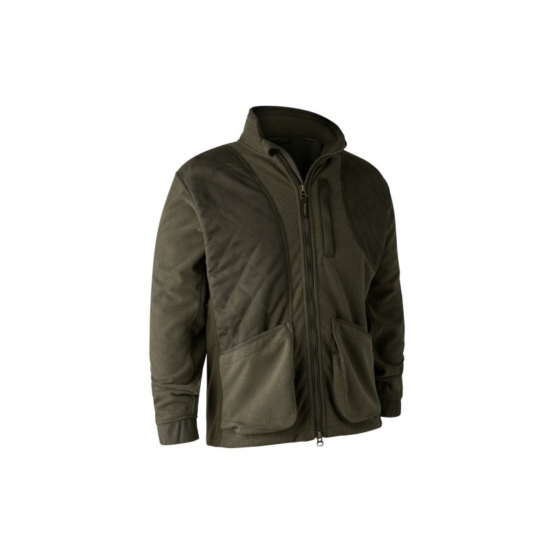 Cette veste de chasse Gamekeeper de la marque Deerhunter est un modèle chaud en polaire extensible.