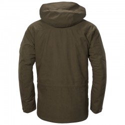 Ce modèle de veste de poste Härkila est long, couvrant bien les reins même assis. Cette veste se ferme par un zip bidirectionnel caché sous un rabat coupe-vent et imperméable.