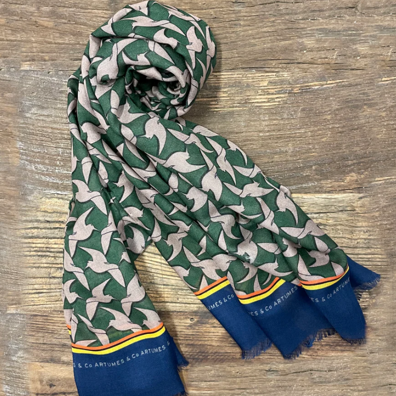 Avec ses bécasses comme motif et son fond de couleur vert basilic, ce tourdesoi est l’accessoire qu’il vous faut pour vous démarquer, tout en abordant un style atypique.