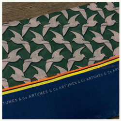Avec ses dessins de bécasses sur fond vert basilic, cet accessoire est un élément de style qui ira parfaitement avec beaucoup d’autres tenues.